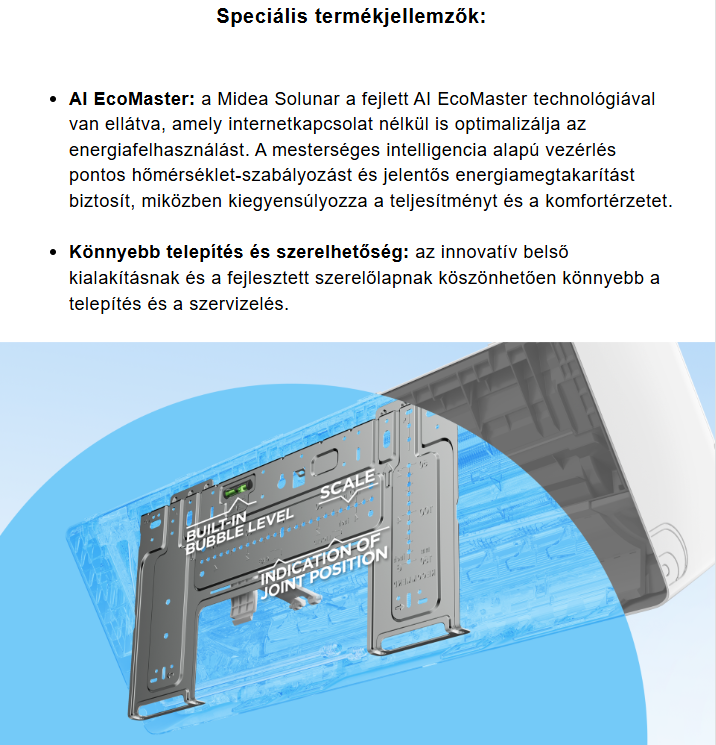 A Midea LUN-12-SP Solunar Inverteres Split klíma fontos tulajdonságai: